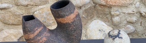 Les colombins donnent une liberté formelle à laquelle j’aime me confronter de temps en temps. Ce vase double est le résultat d’une improvisation, en grès noir traité en surface par […]